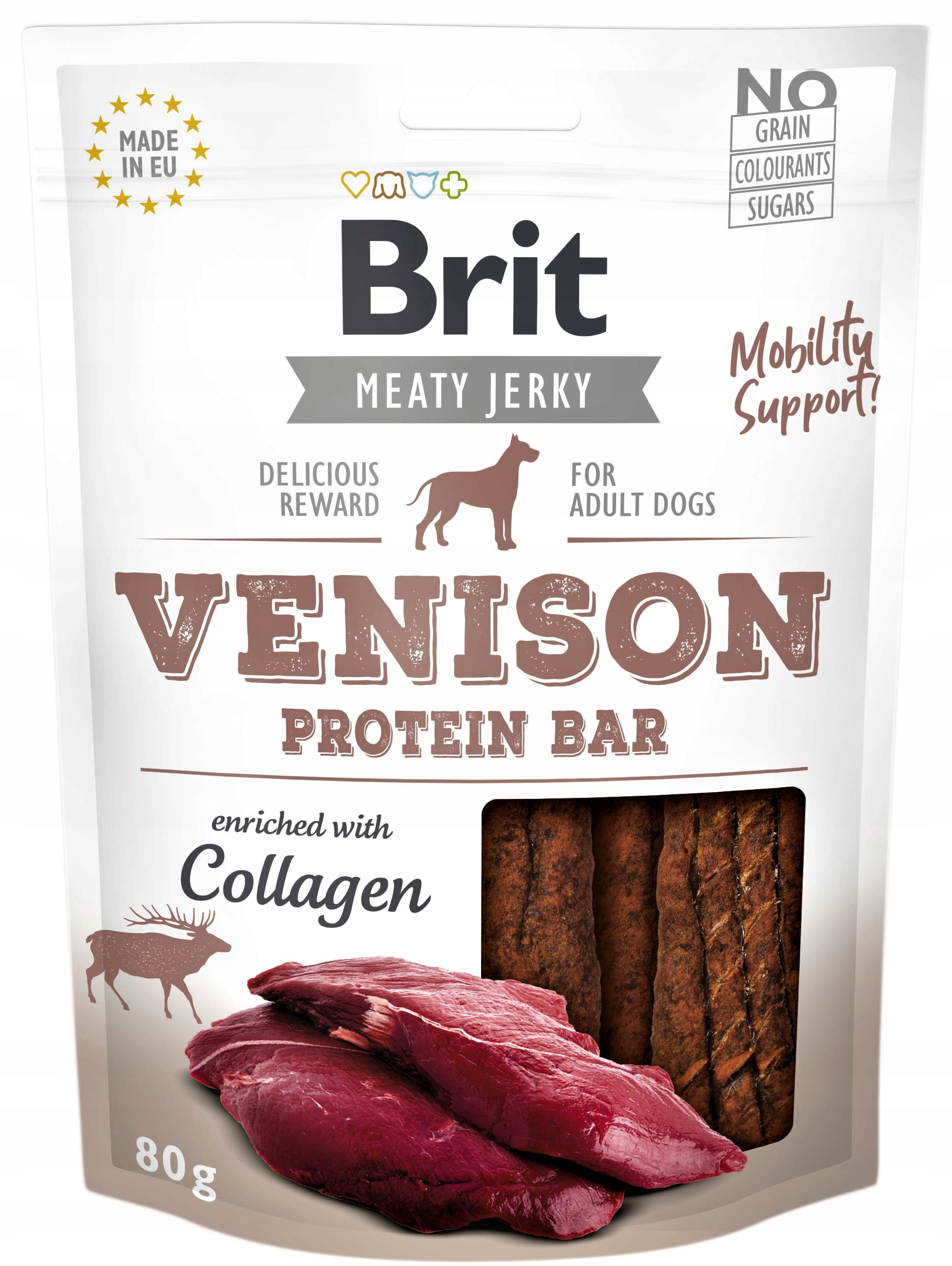 Brit Jerky Snack to zdrowy, smaczny i mięsny dodatek w codziennej diecie psa. Podawać jako nagrodę lub przysmak. Należy zapewnić psu stały dostęp do świeżej wody pitnej. Przysmaki nie mogą zastępować karmy pełnoporcjowej. Ze względu na wysoką smakowitość należy stosować się do zaleceń dziennego dawkowania i codziennie ćwiczyć z psem.