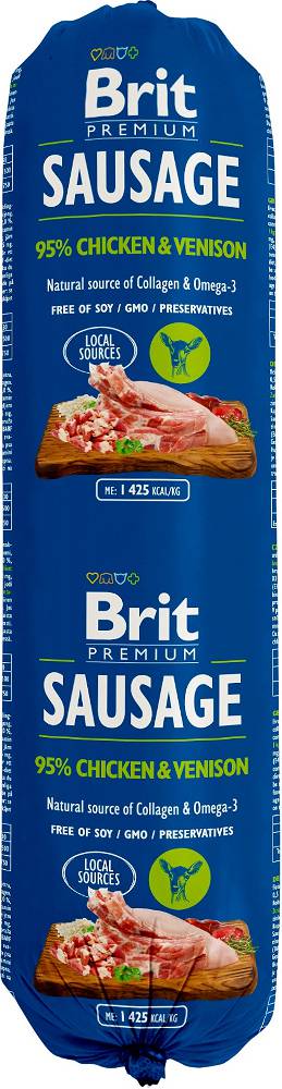 448694ea17ce43708fc4fac9643c0760Brit Sausage Kurczak Dziczyzna 800g