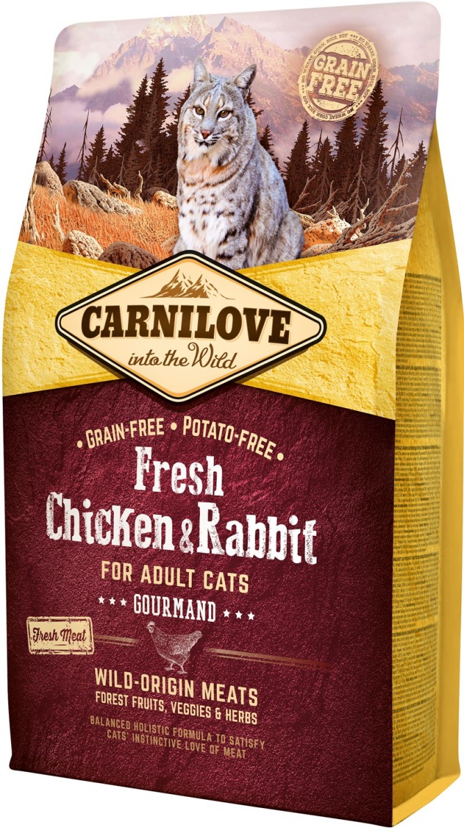 – Karma bezzbożowa ze świeżym mięsem dla wybrednych kotów dorosłych.– Nie zawiera zbóż ani ziemniaków.– Świeże mięso z kurczaka – źródło minerałów i aminokwasów poprawiających mineralizację kości i stawów oraz pomagających budować masę mięśniową.- Suszone mięso z królika i kaczki – dostarczają lekkostrawne białko.- DLA WYBREDNYCH – połączenie mięsa kurczaka i królika będzie smakować nawet wybrednym kotom.- Naturalna dieta wspomaga utrzymanie kondycji fizycznej oraz procesy trawienne.- Zbilansowana dieta dostosowana do naturalnych potrzeb posiada holistyczny skład: