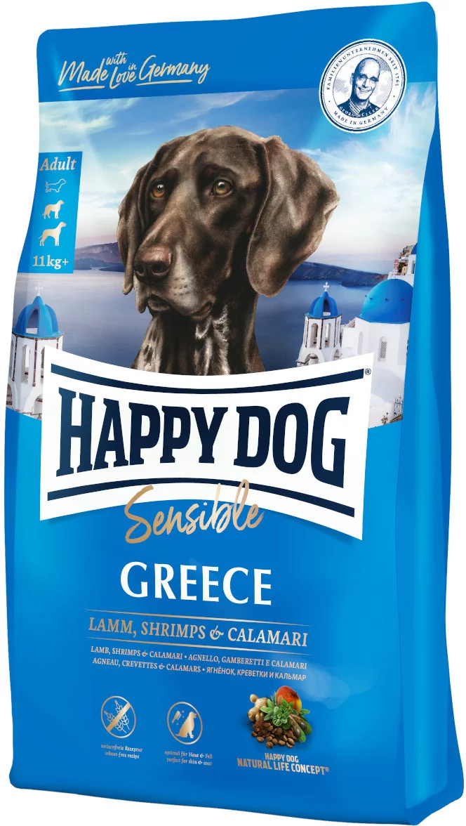 Bezzbożowa receptura z jagnięciną, krewetkami i kalmarami. Dla najlepszej kondycji skóry i sierści- w szczególności dla delikatnych psów. Zafunduj swojemu czworonożnemu przyjacielowi wykwintną kompozycję pysznej jagnięciny, krewetek i kalmarów, udoskonaloną śródziemnomorską mieszanką warzywną. Ta bezzbożowa i smaczna mieszanka z wieloma kwasami tłuszczowymi omega-3 i 6 ze słonecznika i oleju rzepakowego sprzyja błyszczącej sierści i nienaruszonej skórze psa. Idealne menu dla każdego, kto chce karmić swojego zwierzaka w zrównoważony sposób. Happy Dog Supreme Sensible Greece karma z jagnięciną, krewetkami i kalmarami W 100% bezzbożowa Idealna do skóry i sierści Zawiera jagnięcinę, krewetki i kalmary