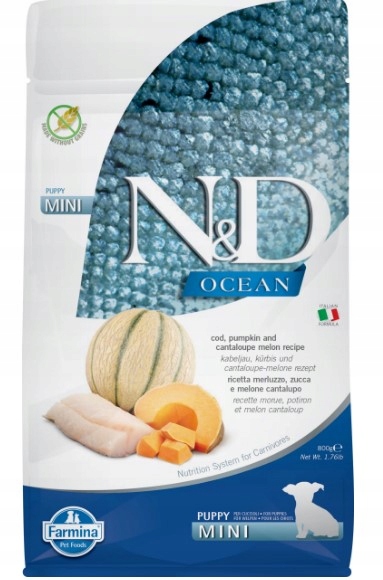 N&D Farmina Ocean Mini Adult Dorsz Dynia to najwyższej jakości karma dla psów dorosłych, stworzona z myślą o ich zdrowiu i witalności. Ta pyszna karma, oparta na rybie dorsz oraz dyni, dostarcza wszystkich niezbędnych składników odżywczych, aby Twój pies mógł cieszyć się pełnią zdrowia i energii. Dzięki specjalnie dobranej formule, jest idealna dla małych ras psów, oferując smaki i wartości odżywcze, które są zgodne z ich potrzebami.