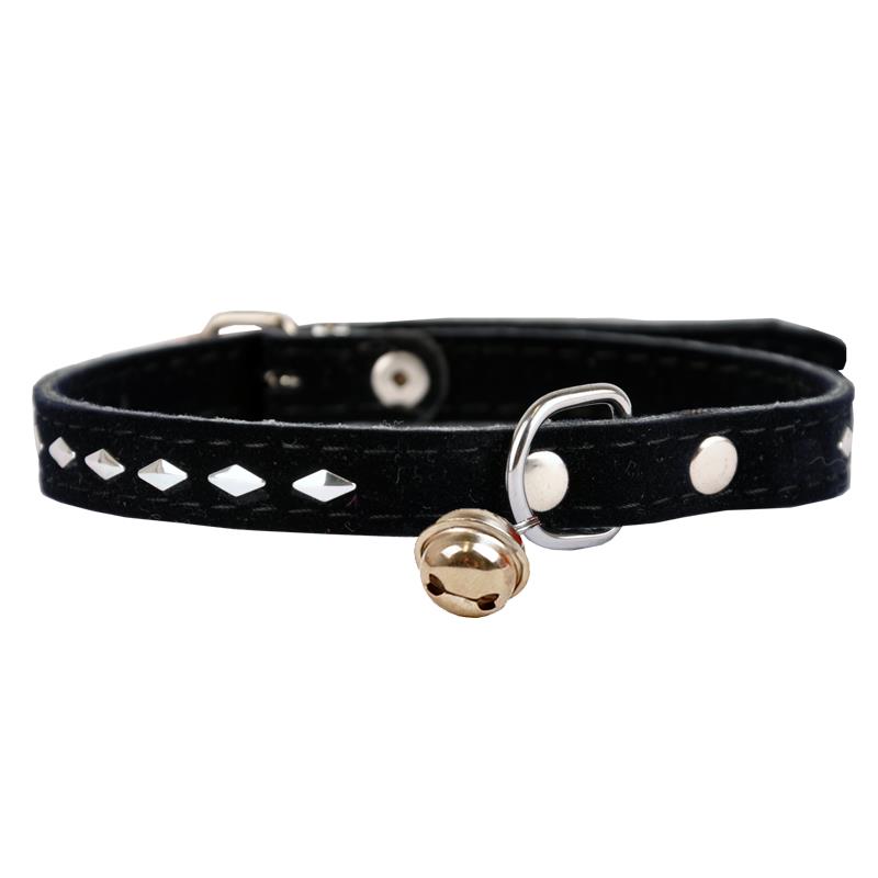Obroża welurowa z dzwoneczkiem Romby 10mm/27cm czarna