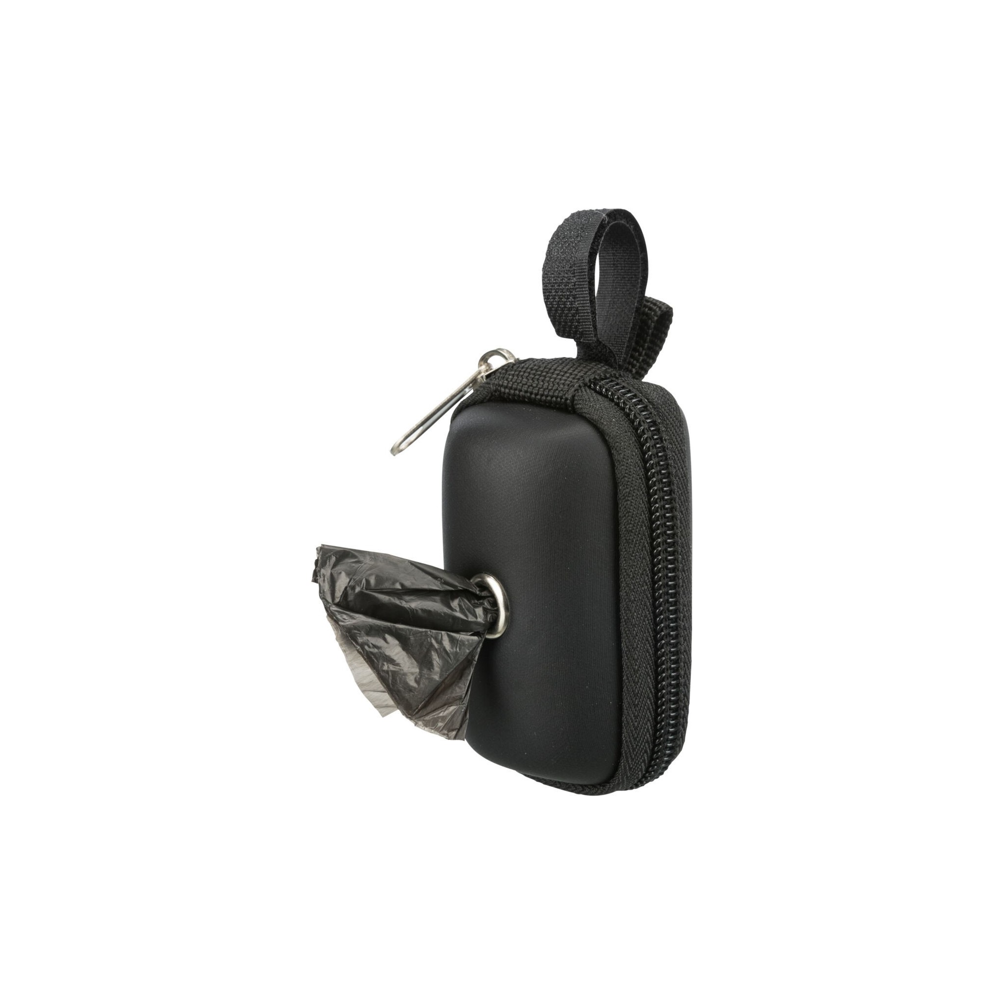 Pojemnik do woreczków na odchody jest praktycznym akcesorium dla właścicieli psów podczas spacerów. Posiada zapięcie na rzep, które zapewnia bezpieczne przechowywanie użytych woreczków. Wykonany jest z trwałego twardego materiału EVA z wykończeniem ze sztucznej skóry (poliester), co gwarantuje jego wytrzymałość i łatwość w utrzymaniu czystości. Dzięki temu właściciel może komfortowo dbać o porządek podczas wyprowadzania swojego pupila.