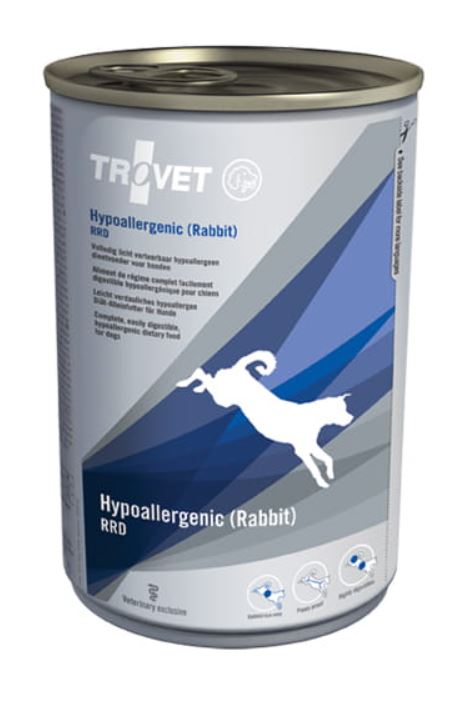 Dieta Trovet RRD jest pokarmem pełnoporcjowym przygotowanym z produktów najwyższej jakości, o których wiadomo, że nie powodują alergii pokarmowej. Wysokiej jakości mięso z królika jest jedynym źródłem białka, natomiast węglowodany pochodzą wyłącznie z ryżu. Nie zawiera produktów mlecznych, glutenu, laktozy, które mogą być przyczyną nietolerancji pokarmowej. Może być zastosowana do żywienia szczeniąt.