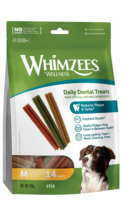 Higiena jamy ustnej u psów jest tak samo ważna, jak u ludzi, a gryzaki dentystyczne WHIMZEES ułatwiają psom codzienne oczyszczanie zębów. WHIMZEES to niezastąpiona, codzienna pielęgnacja zębów Twojego psa.