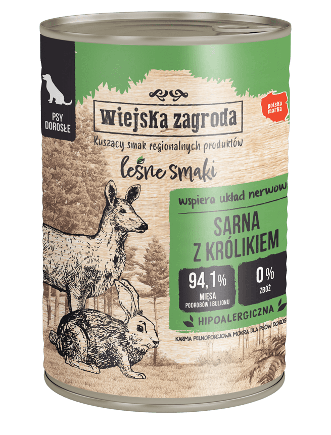 Poznaj wyjątkowe, funkcyjne karmy LEŚNE SMAKI z Wiejskiej Zagrody! Starannie opracowane przez dietetyków receptury bazują na psich pierwotnych nawykach żywieniowych, oferując pupilom wszystko to, co w naturze jest dla nich najlepsze. Te niezwykłe formuły to zdrowe połączenie cennych leśnych mięs, takich jak: sarna, dzik, jeleń, czy pstrąg z wartościowymi: wołowiną, cielęciną, wieprzowiną, kaczką, jagnięciną, przepiórką lub królikiem.
