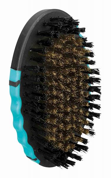 Plastikowa, jednostronna szczotka z drucianymi zębami i rączce pokrytej antypoślizgową gumą.